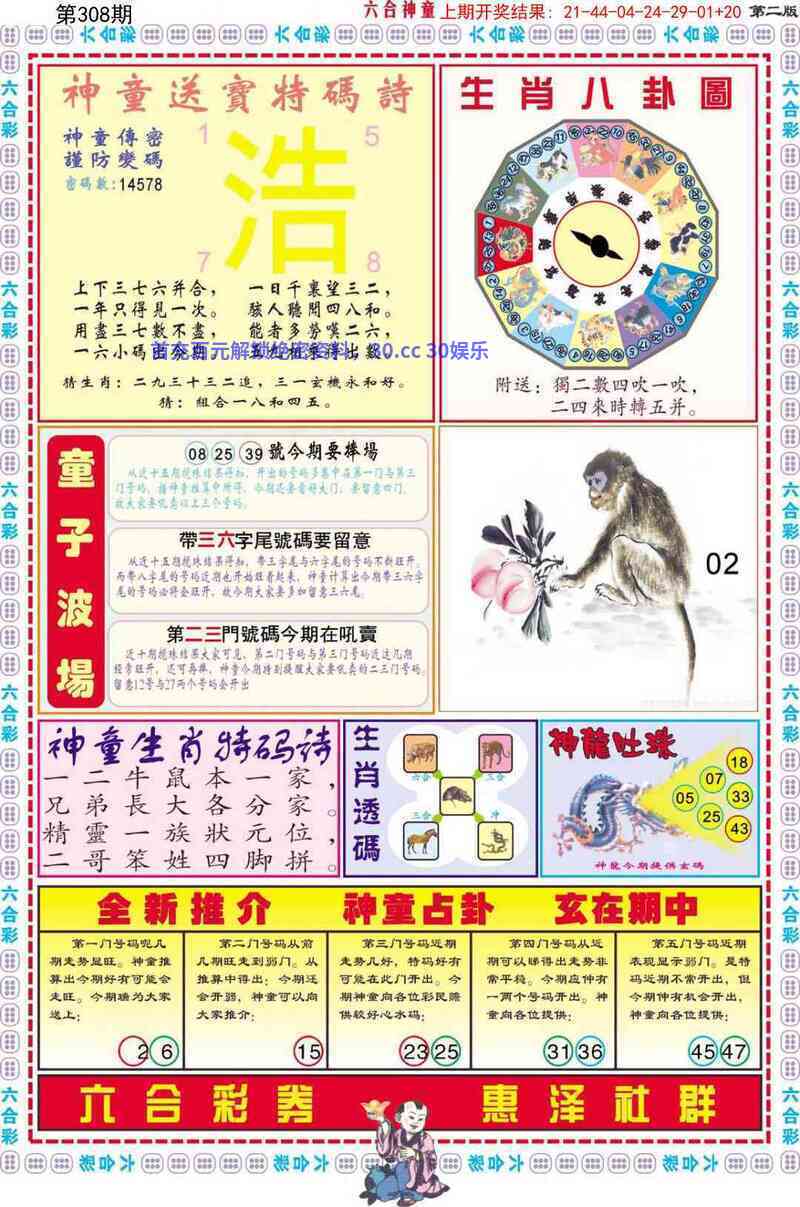 | 308期:【7尾→拖25尾】开00.00.45准 |