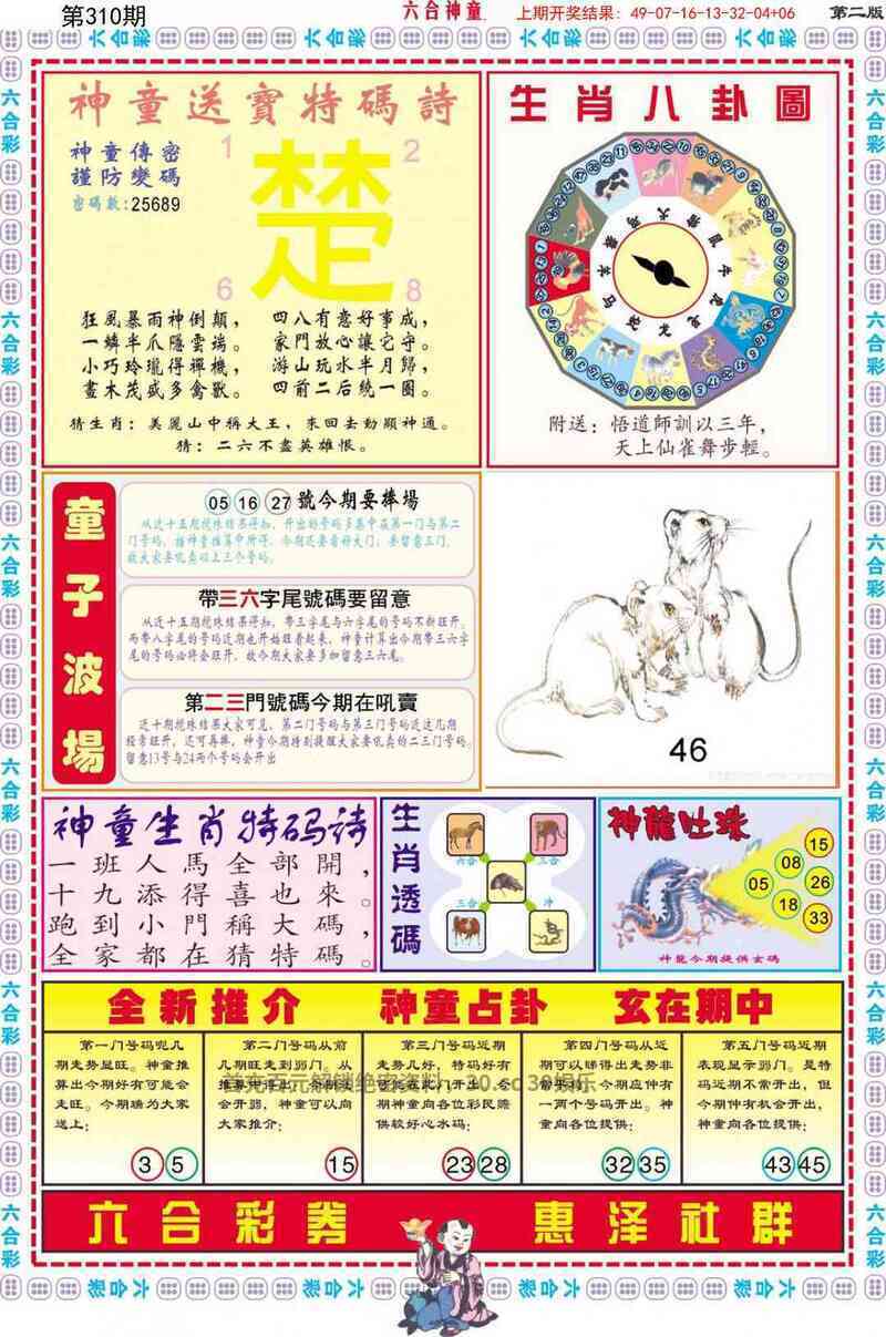 | 305期:〖六尾中特〗【023489】开:鼠42中 |